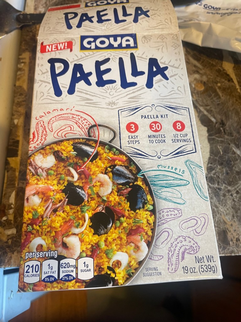 I used a boxed seafood paella mix I picked up from the store last week and added a few small touches to make it feel more like my meal.