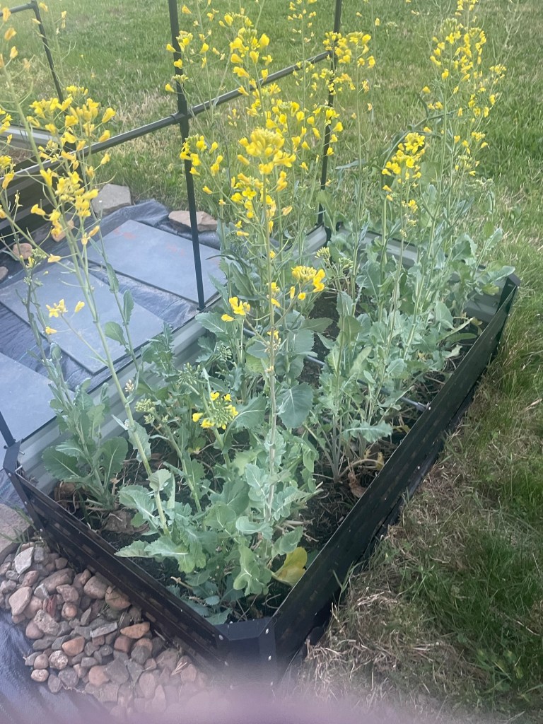 Right now, I’m letting a few plants go to seed. Once the seeds are ready and collected, I’ll clear that bed to make room for cucumbers and green beans.